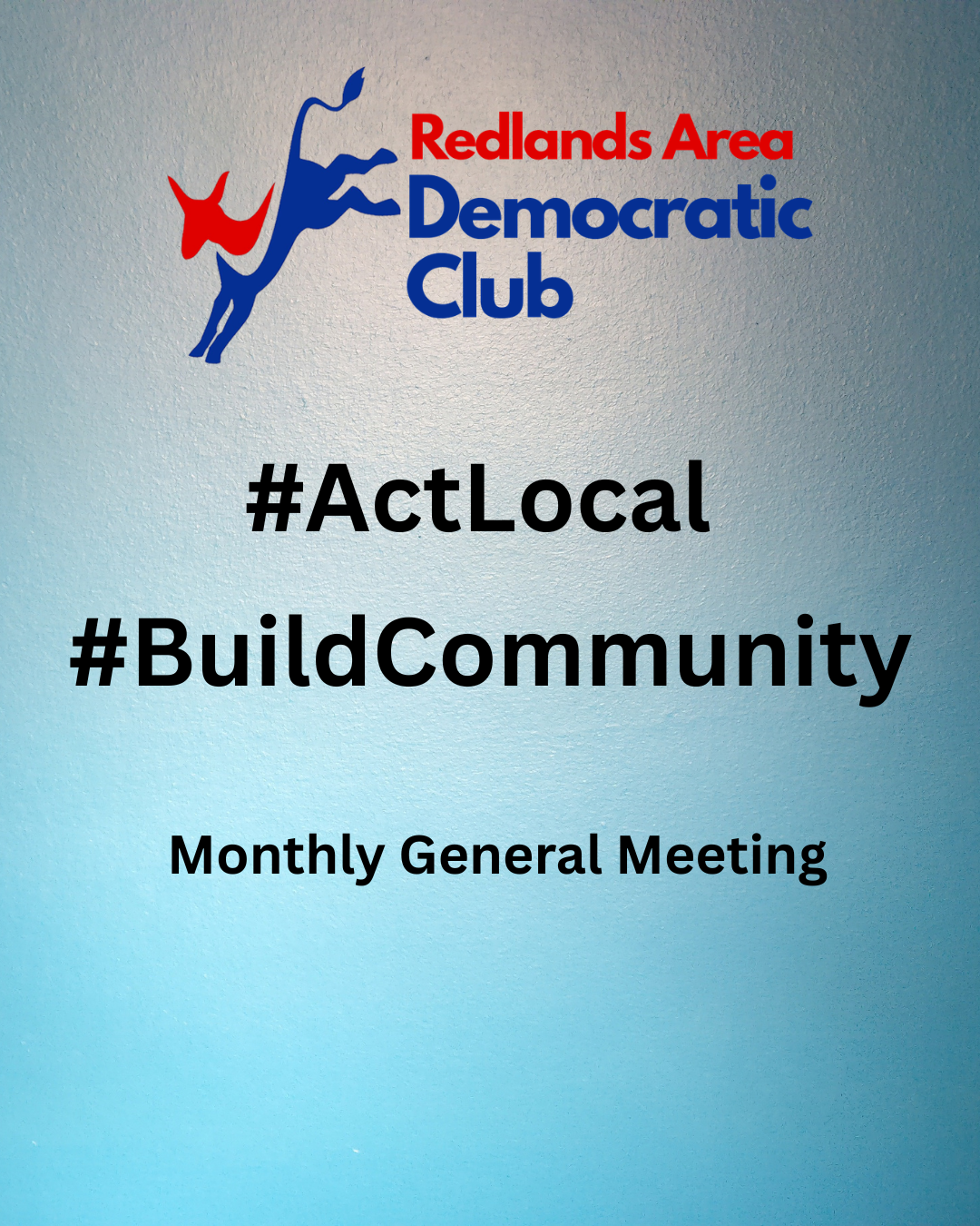 The Redlands Area Democratic Club is holding its General Meeting in April on the **second** Saturday of the month, at 11:00 AM, because of a conflict with this year's Earth Day.